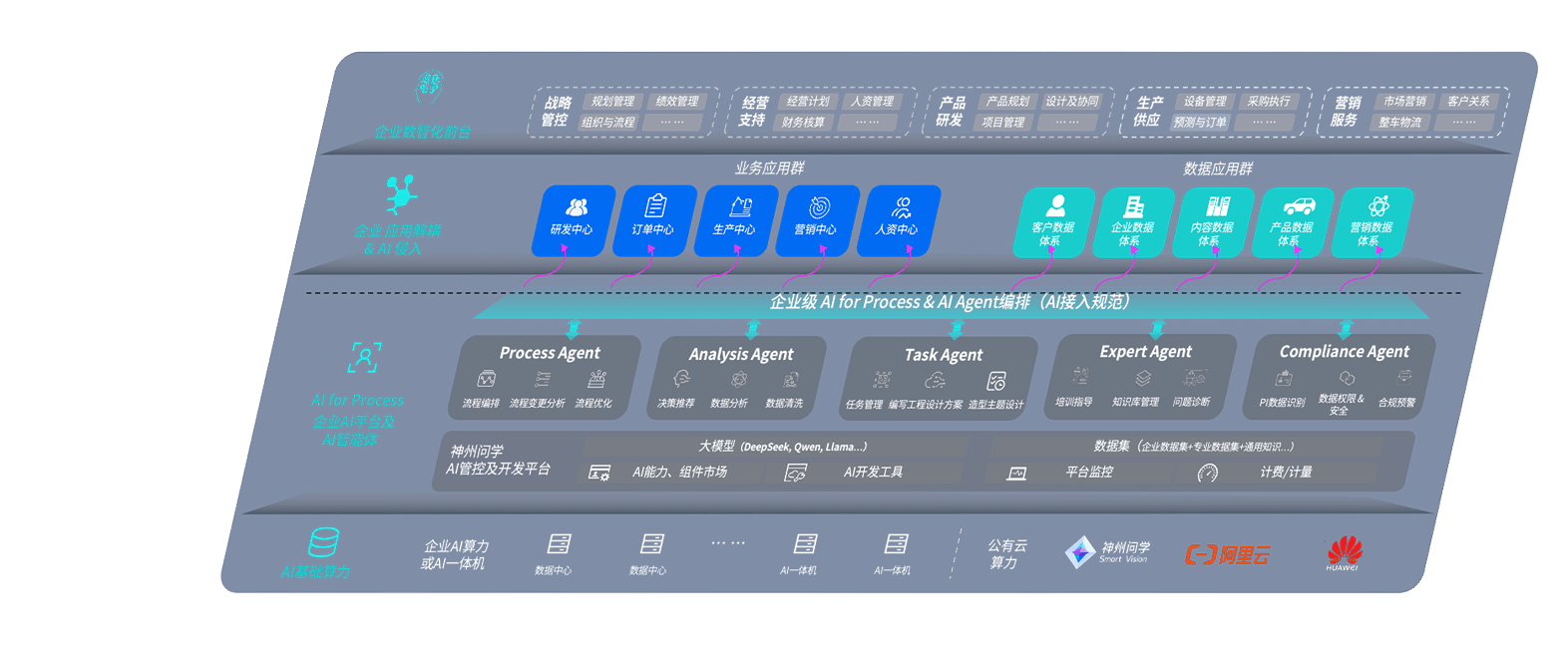 端到端的一站式AI工作空间深度融合了从企业战略规划到日常经营的全流程业务板块,,定向解决车企内部领域多、、、、部门多、、、、链条长、、场景碎片化等难题,,,,支持车企快速构建以AI为核心的生产力写作体系,,,,实现任务执行与AI能力的无缝集成与交互
